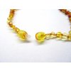 Tradičné jantárové korálky pre deti sú ručne vyrobené z okrúhlych kúskov jantáru vo farbe medu vyleštených do vysokého lesku. Bezpečný uzáver je vhodný aj pre alergikov. Medzi každým korálikom je uzlík zabraňujúca rozsypania pri pretrhnutí. Dĺžka cca 32 cm.