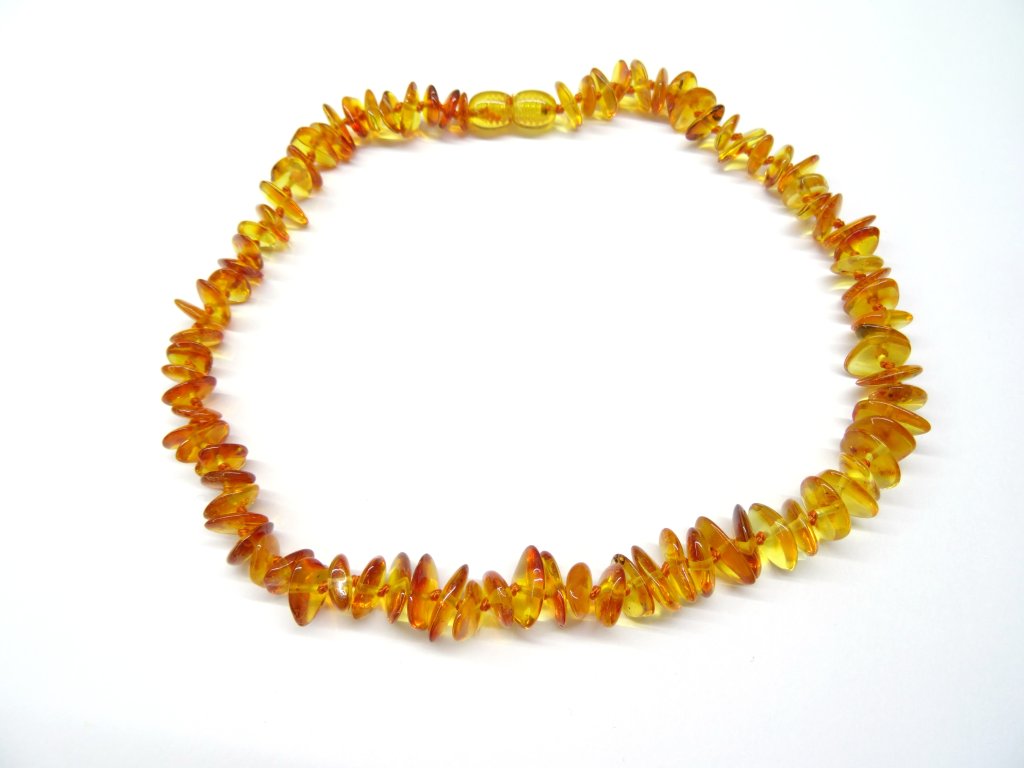 - Nenechávajte dieťa korálky žuť - jantár je veľmi mäkký a ľahko dôjde k jeho rozhryznutí. V zažívacom trakte sa jantárový zlomok bez zvyšku rozloží. Je tu však riziko vniknutia rozkousnutého korálku do dýchacieho ústrojenstva, preto je vhodné toto opatrenie bezpodmienečne dodržiavať.