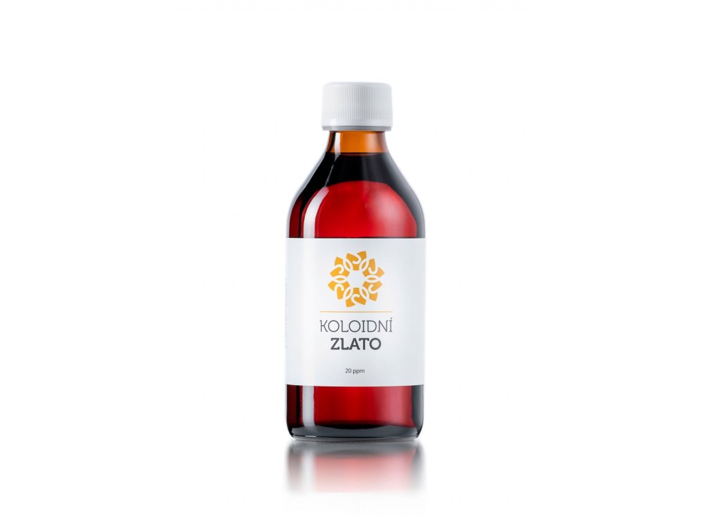 Čisté koloidné zlato farmaceutickej kvality, koncentrácia 20 mg zlata na 1 kg vody.